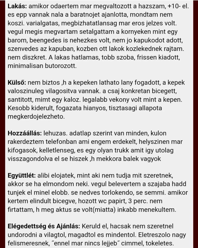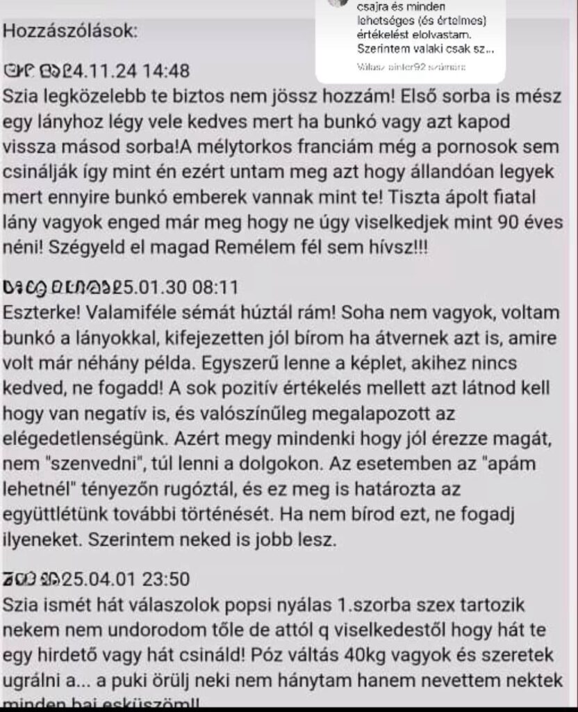 A nők lejáratása végülis kimerül abban, hogy lepontozza őket és lejárató kommentet ír róluk a rosszlanyok.hu oldalon. Példa